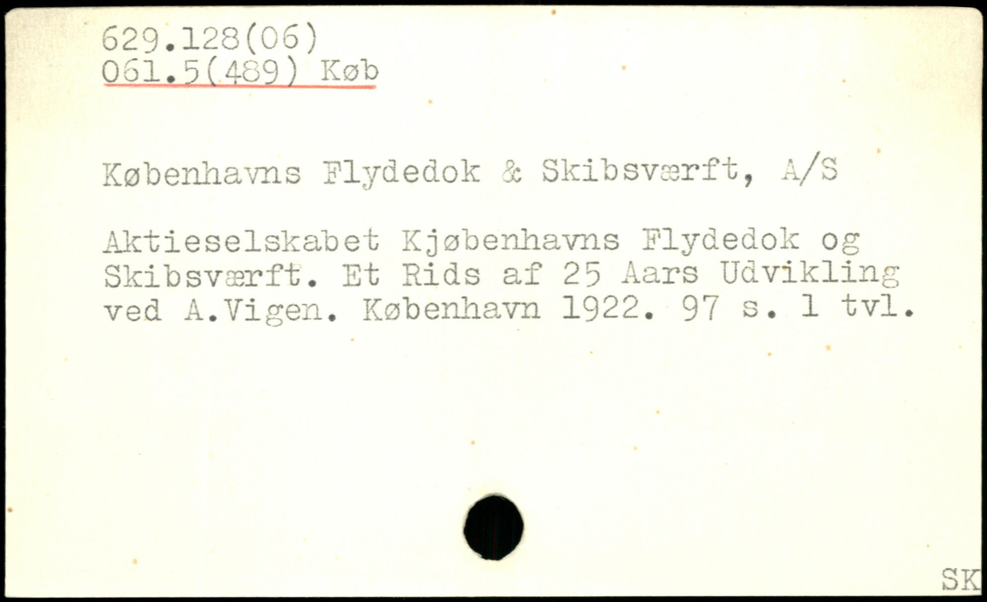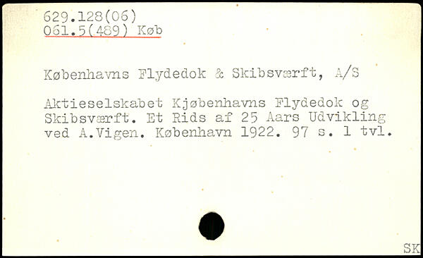 Københavns Flydedok Skibsværft, a/3 Aktieselskabet Kjøbenhavns Flydedok og Skibsværft. Et Rids af 25 Aars Udvikling ved A.Vigen.