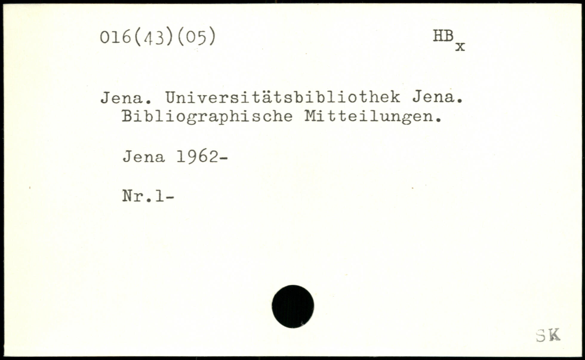Jena. Universitätsbibliothek Jena. Bibliographische Mitteilungen. Jena 1962- Nr.l-