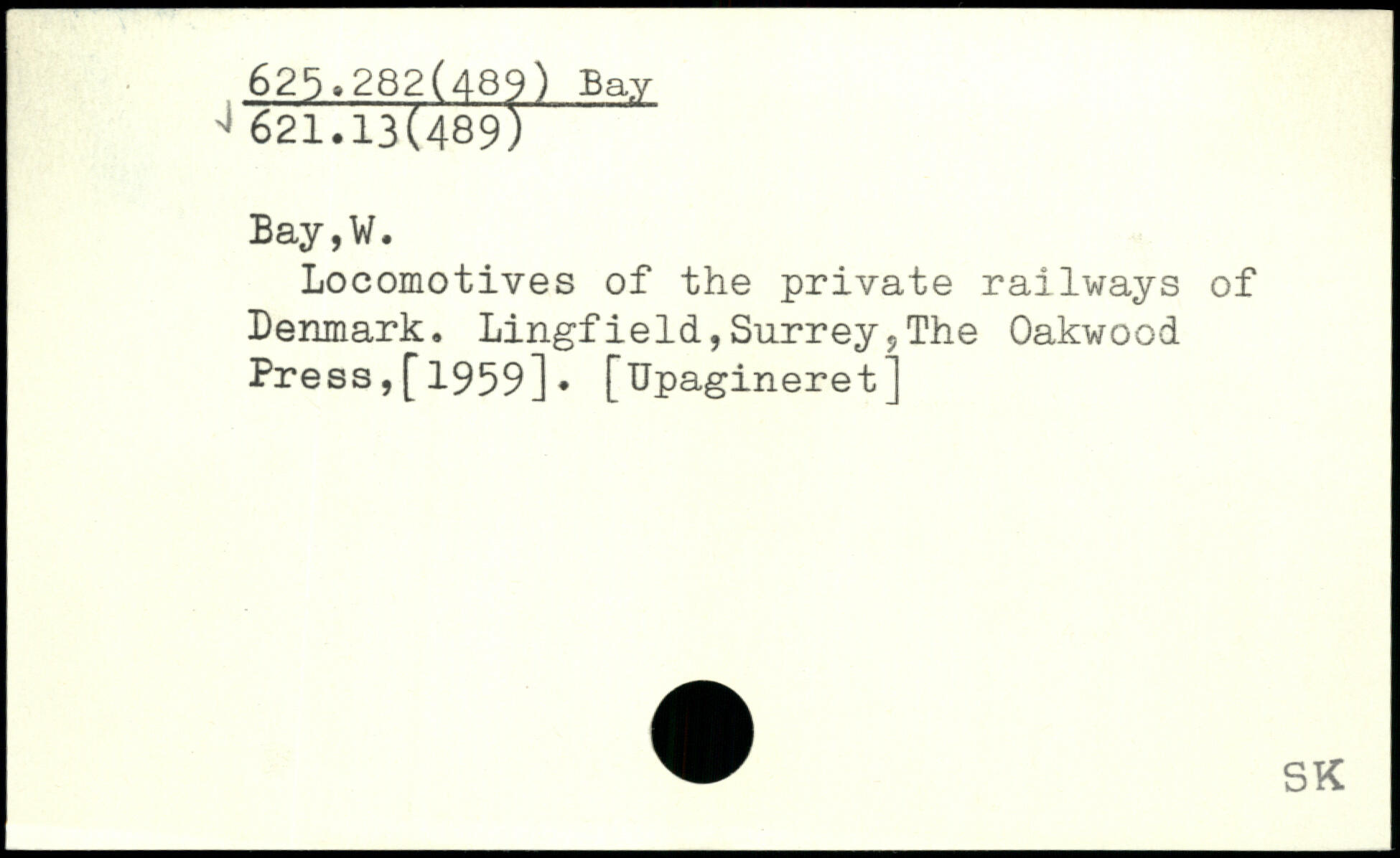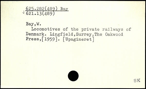 Locomotives of the private railways of Denmark. Lingfield,Surrey?The Oakwood Press,[1959]. [Upagineret]
