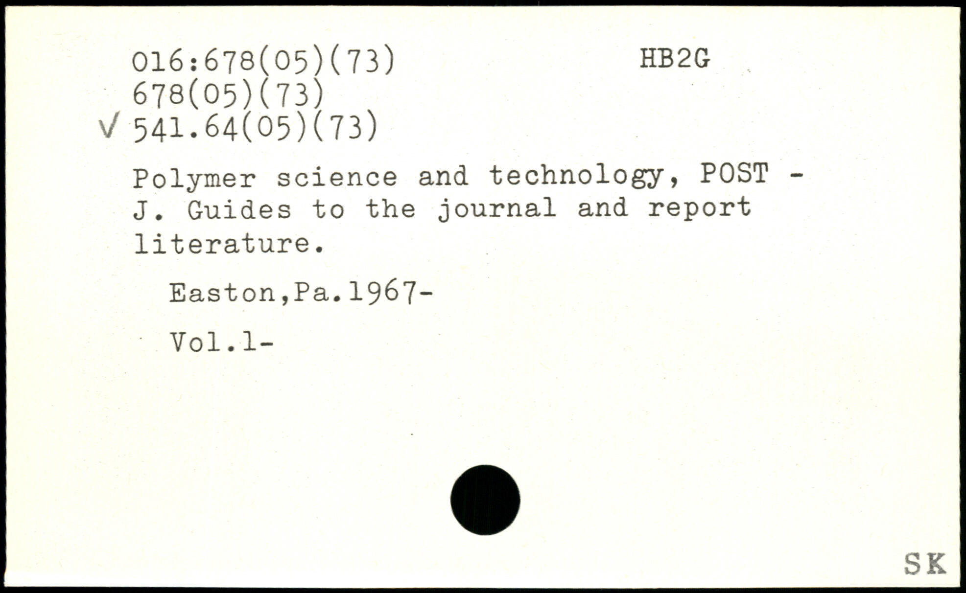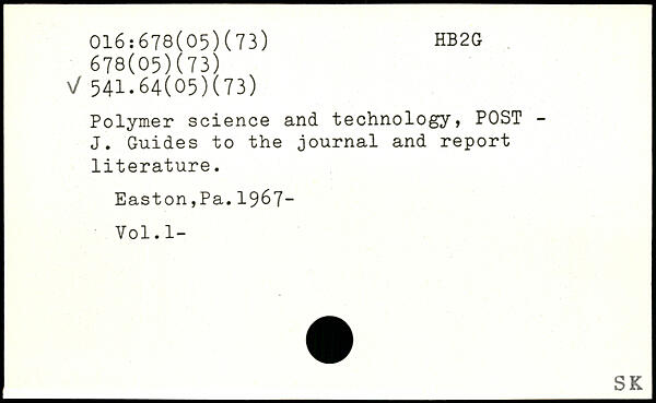 Polymer science and technology, POST -J. Guides to the journal and report literature. Easton,Pa.1967- Vol.l-