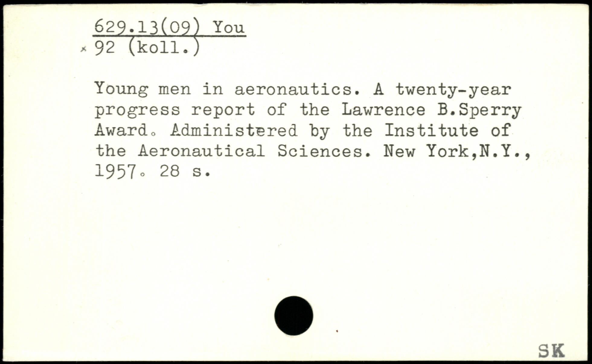 Young men in aeronautics. A twenty-year progress report of the Lawrence B.Sperry Award, Administered by the Institute of the Aeronautical Sciences.
