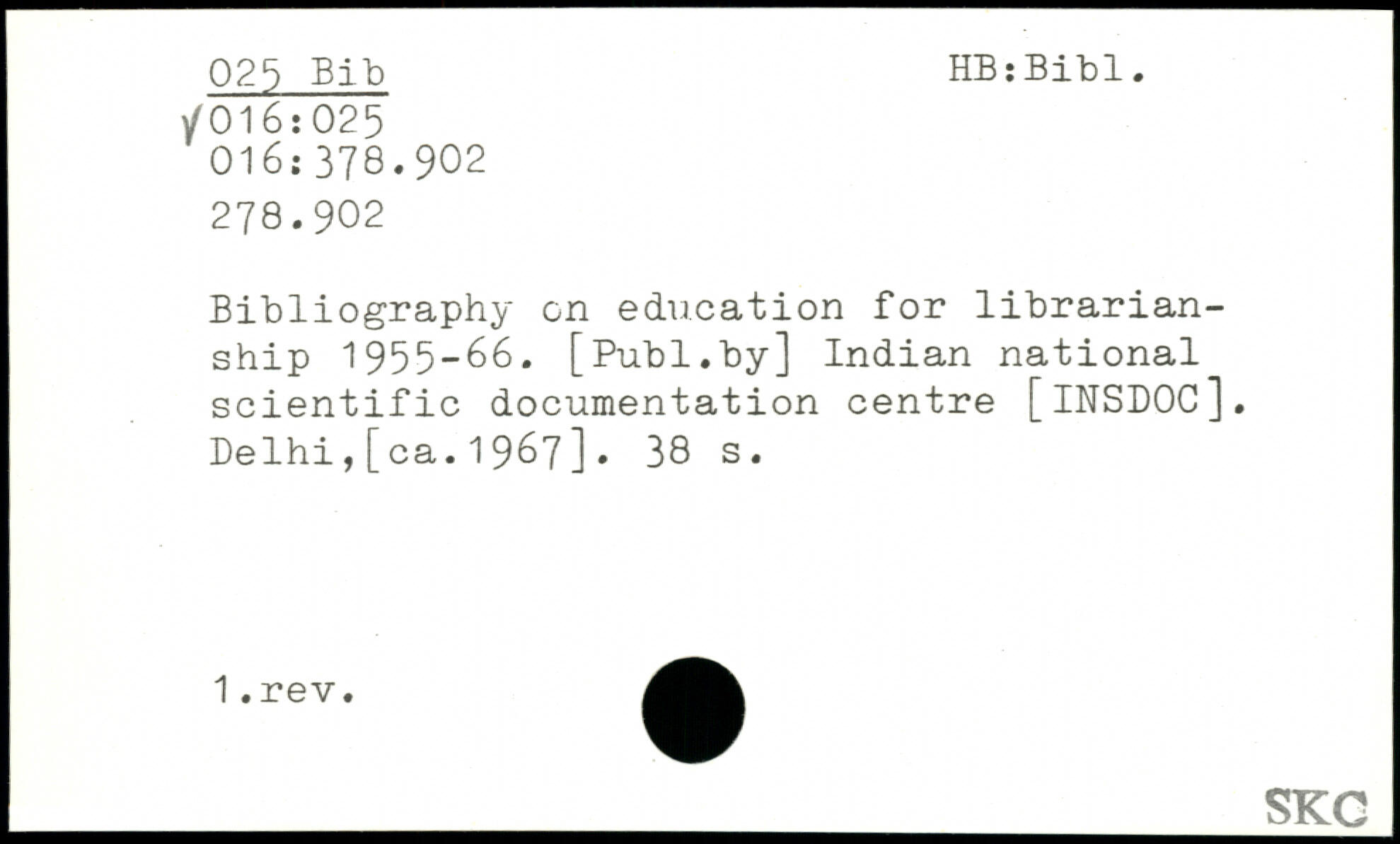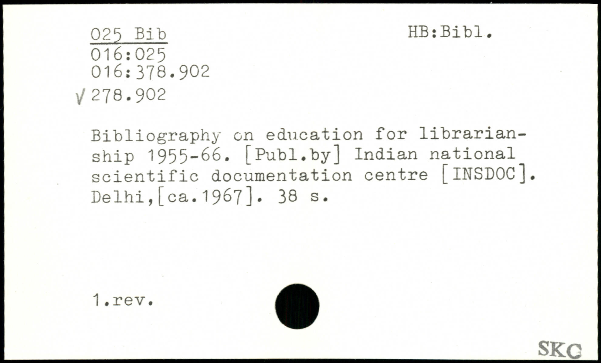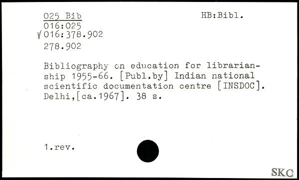 Bibliography on education for librarian-ship 1955-66.