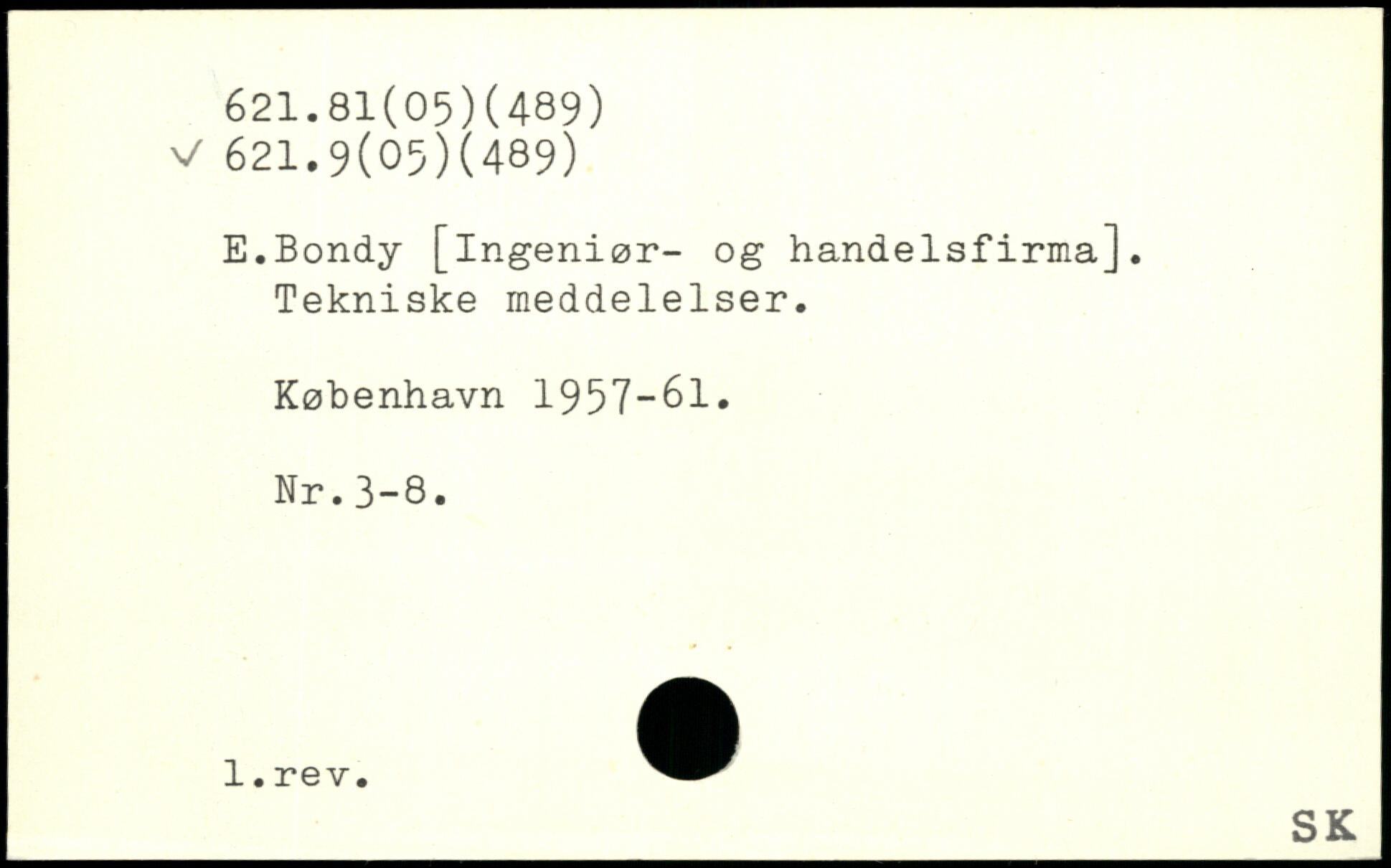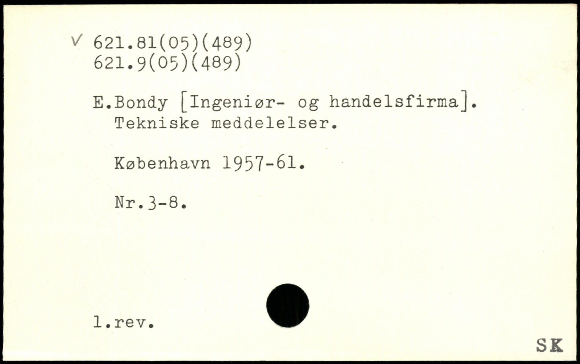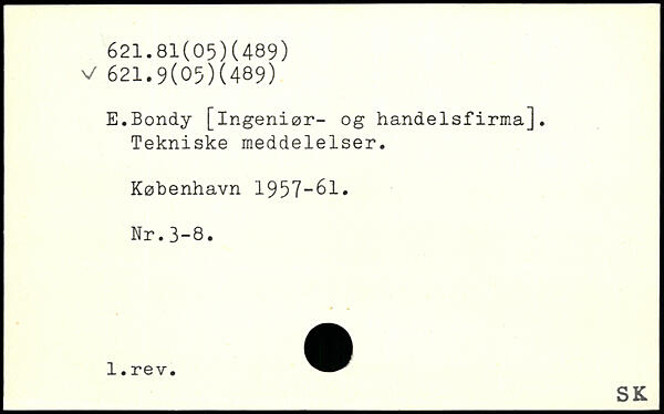 E.Bondy [ingeniør- og handelsfirma]. Tekniske meddelelser.