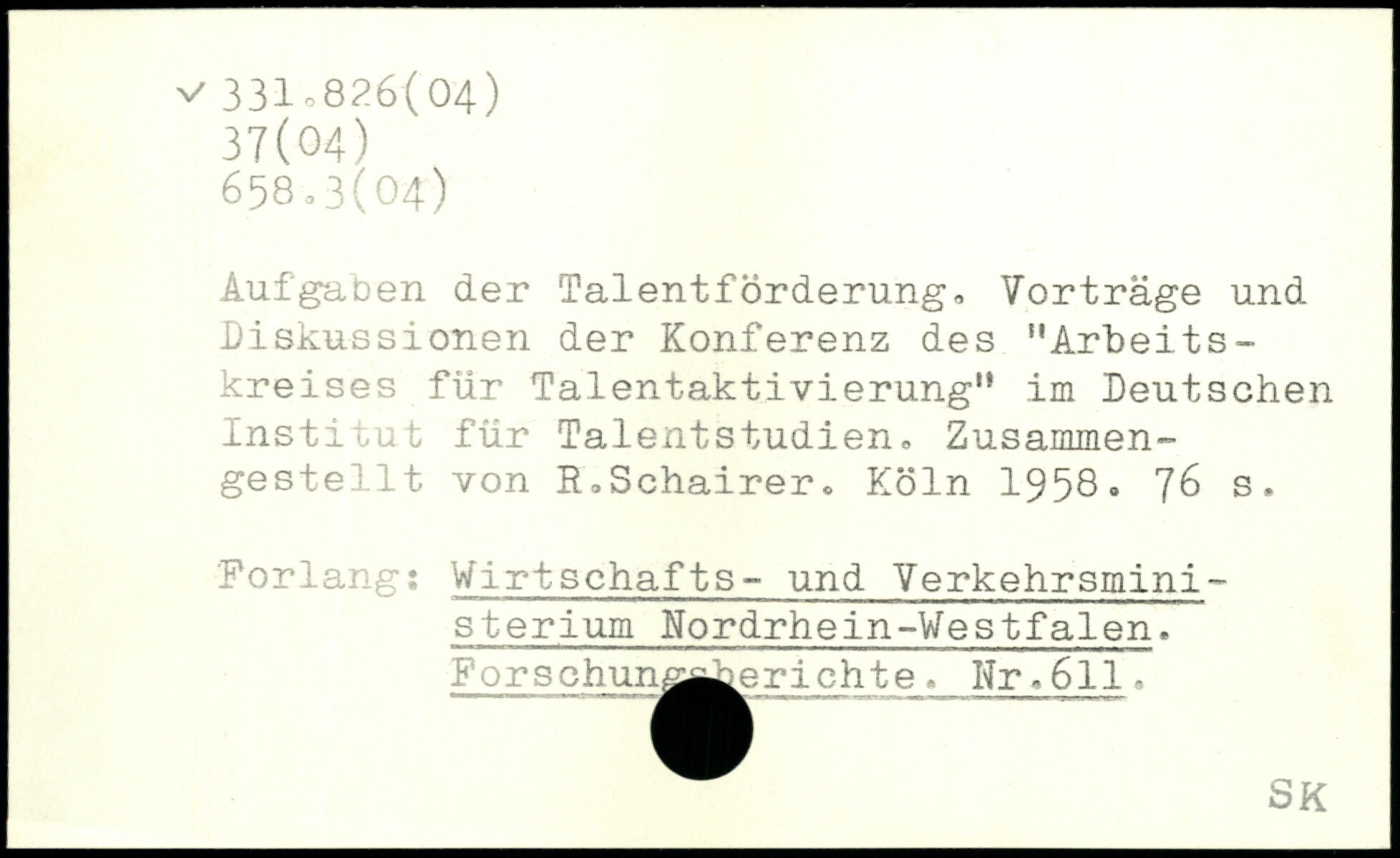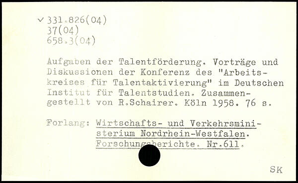 Aufgaben der Talentförderung, Vorträge und Diskussionen der Konferenz des "Arbeitskreises für Talentaktivierung" im Deutschen Institut für TalentStudien, Zusammen-geste1;lt von R,Schairer.