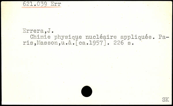 Chimie physique nucléaire appliquée. Paris ,Masson,u.â.[ca.1957].