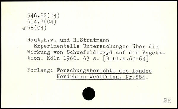 Experimentelle Untersuchungen über die Wirkung von Schwefeldioxyd auf die Vegetation.