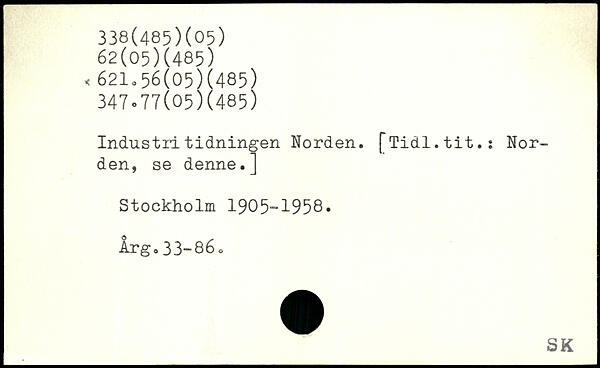 Industri tidningen Norden. [Tidl.tit.: Nor-den, se denne.]