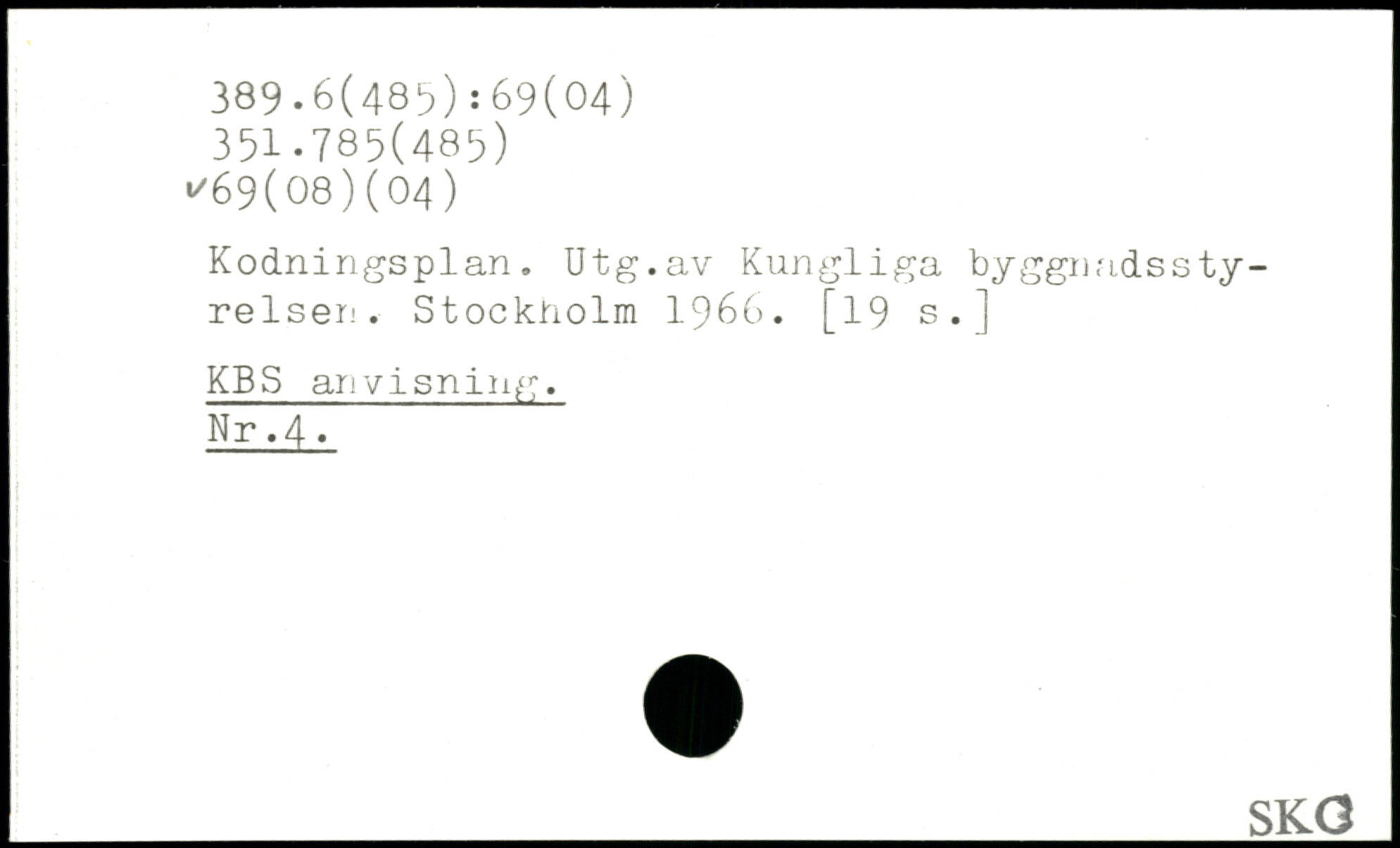 Kodningsplan. Utg.av Kungliga byggnadsstyrelser.'.