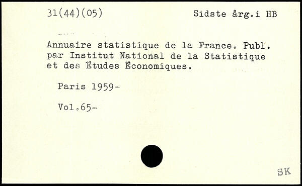 Annuaire statistique de la France, Publ. par Institut National de la Statistique et des Études Économiques.