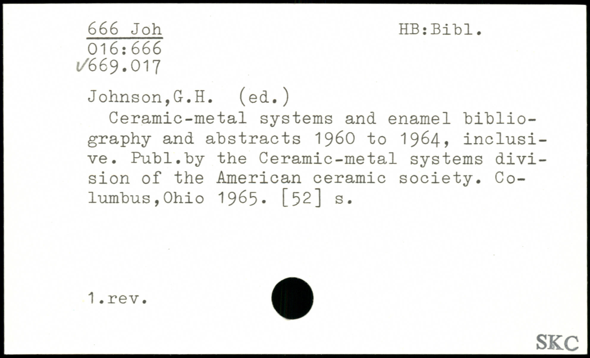 Ceramic-metal systems and enamel bibliography and abstracts 1960 to 1964, inclusive.