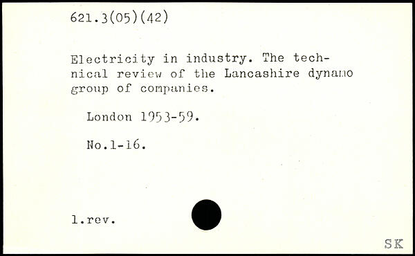 Electricity in industry. The technical review of the Lancashire dynamo group of companies.