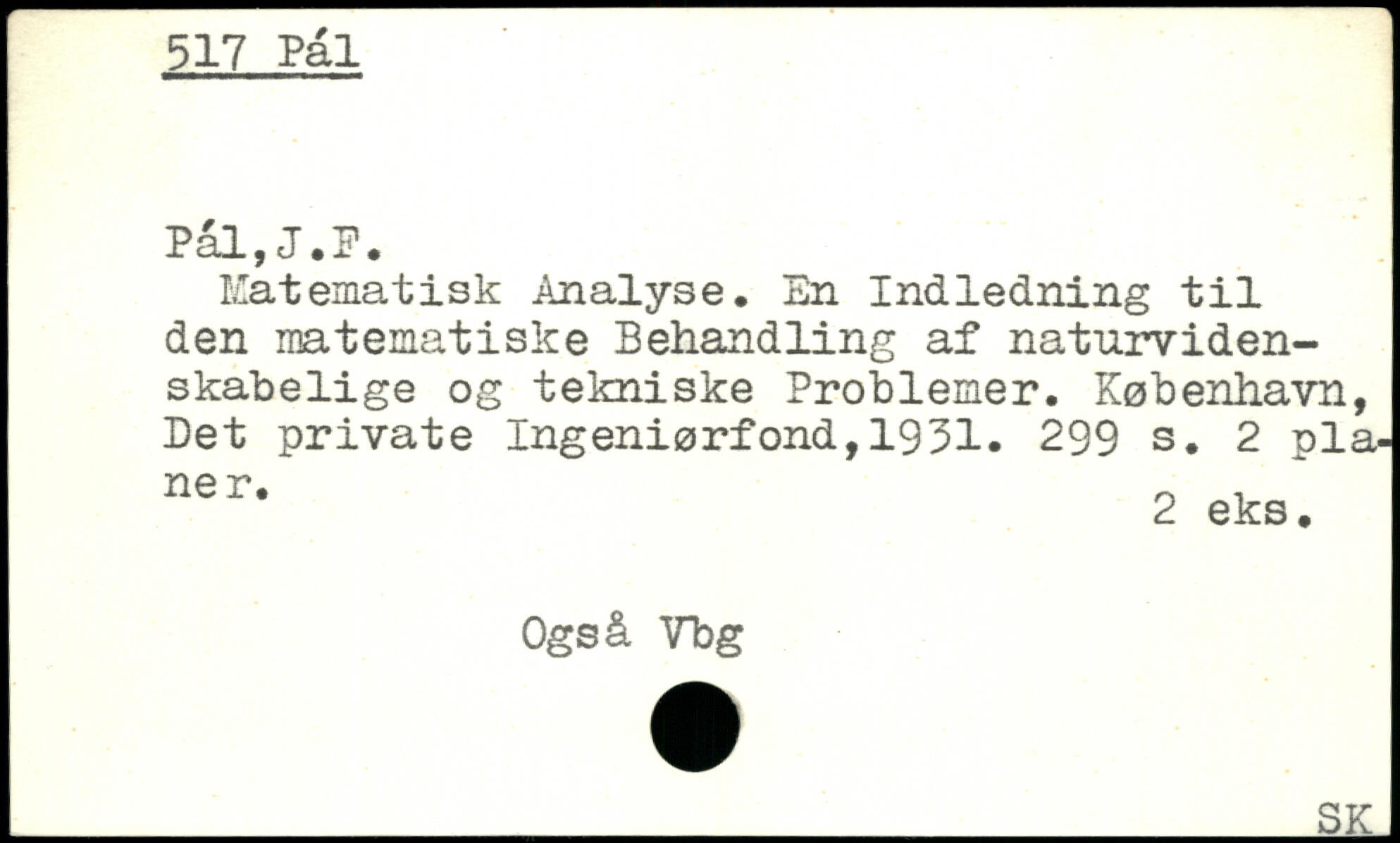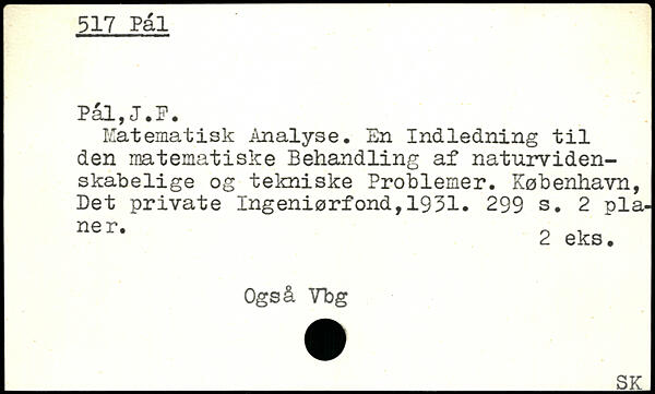 Matematisk Analyse. En Indledning til den matematiske Behandling af naturvidenskabelige og tekniske Problemer.