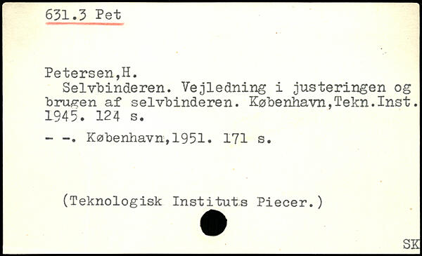 Selvbinderen. Vejledning i justeringen og brwen af selvbinderen. København,Tekn.Inst. 1945.
