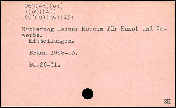Erzherzog Rainer Museum für Kunst und Gewerbe. Mitteilungen. Brünn 19o8-13.
