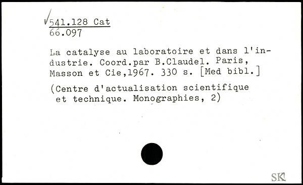 La catalyse au laboratoire et dans l'industrie. Coord.par B.Claudel.