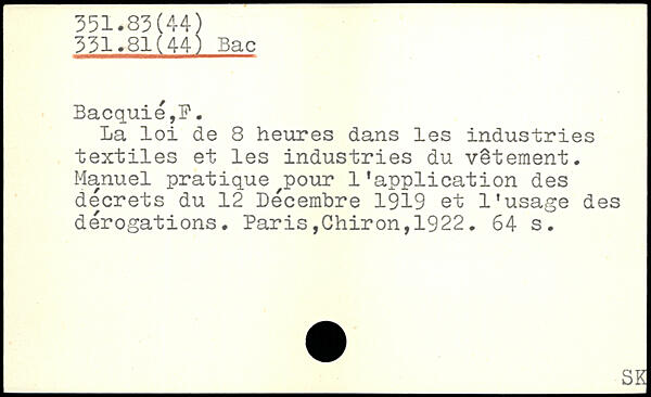 La loi de 8 heures dans les industries textiles et les industries du vêtement. Manuel pratique pour 1 Application des decrets du 12 Décembre 1919 et l’usage des dérogations.