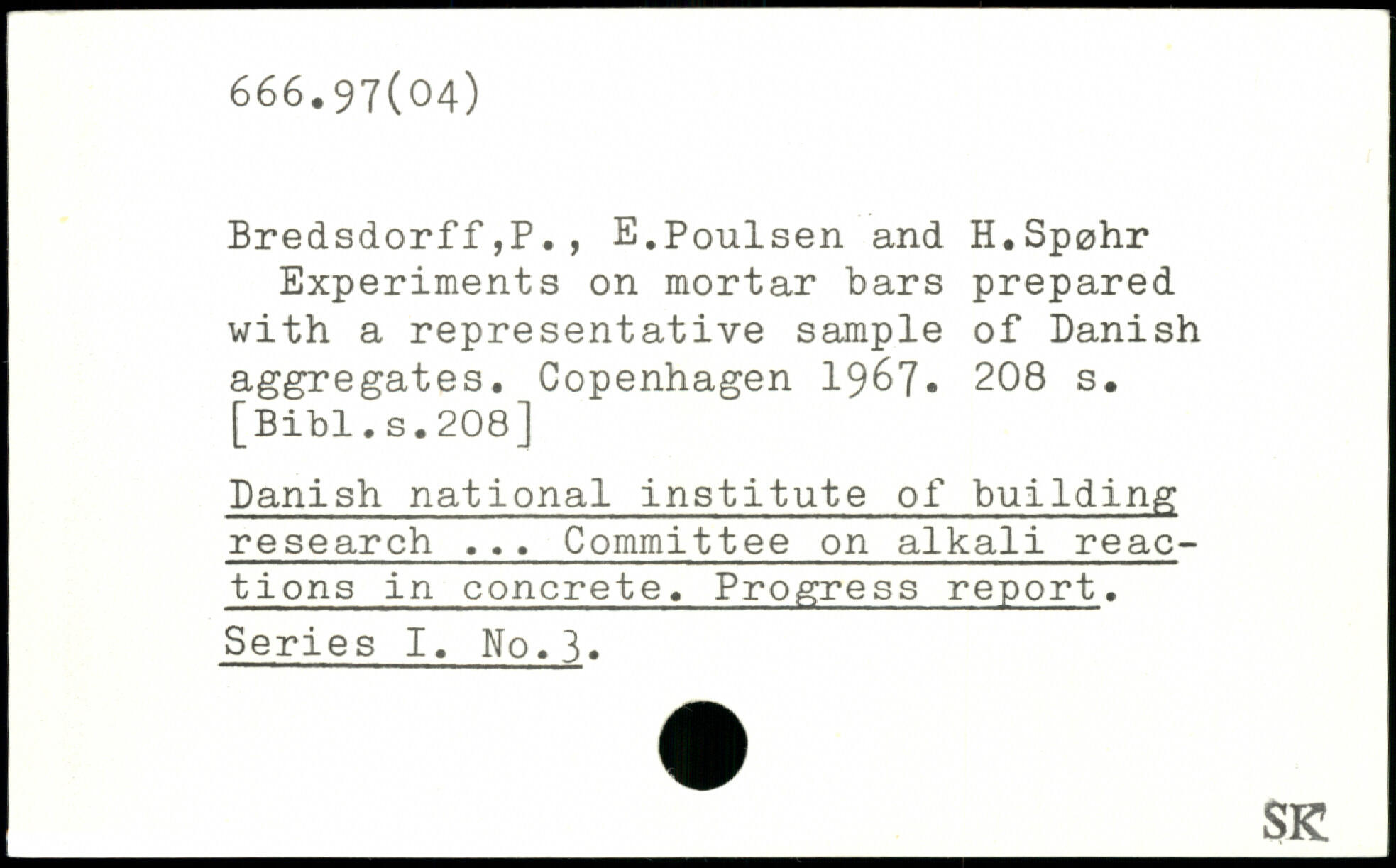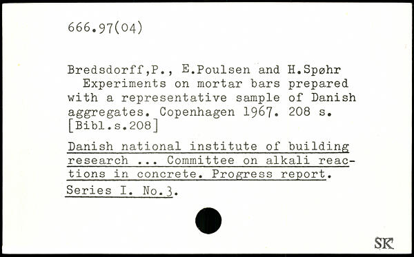 Bredsdorff,P., E.Poulsen and H.Sp0hr Experiments on mortar bars prepared with a representative sample of Danish aggregates.