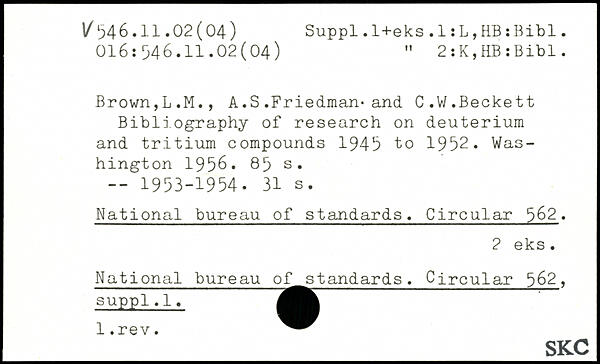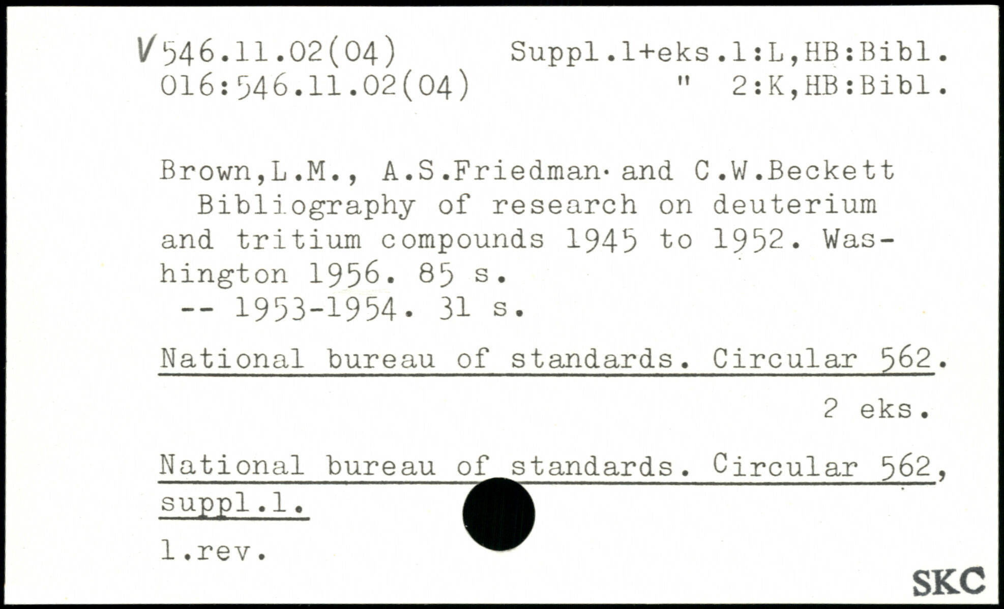 Brown,L.M., A.S.Friedman-and C.W.Beckett Bibliography of research on deuterium and tritium compounds 1945 to 1952.
