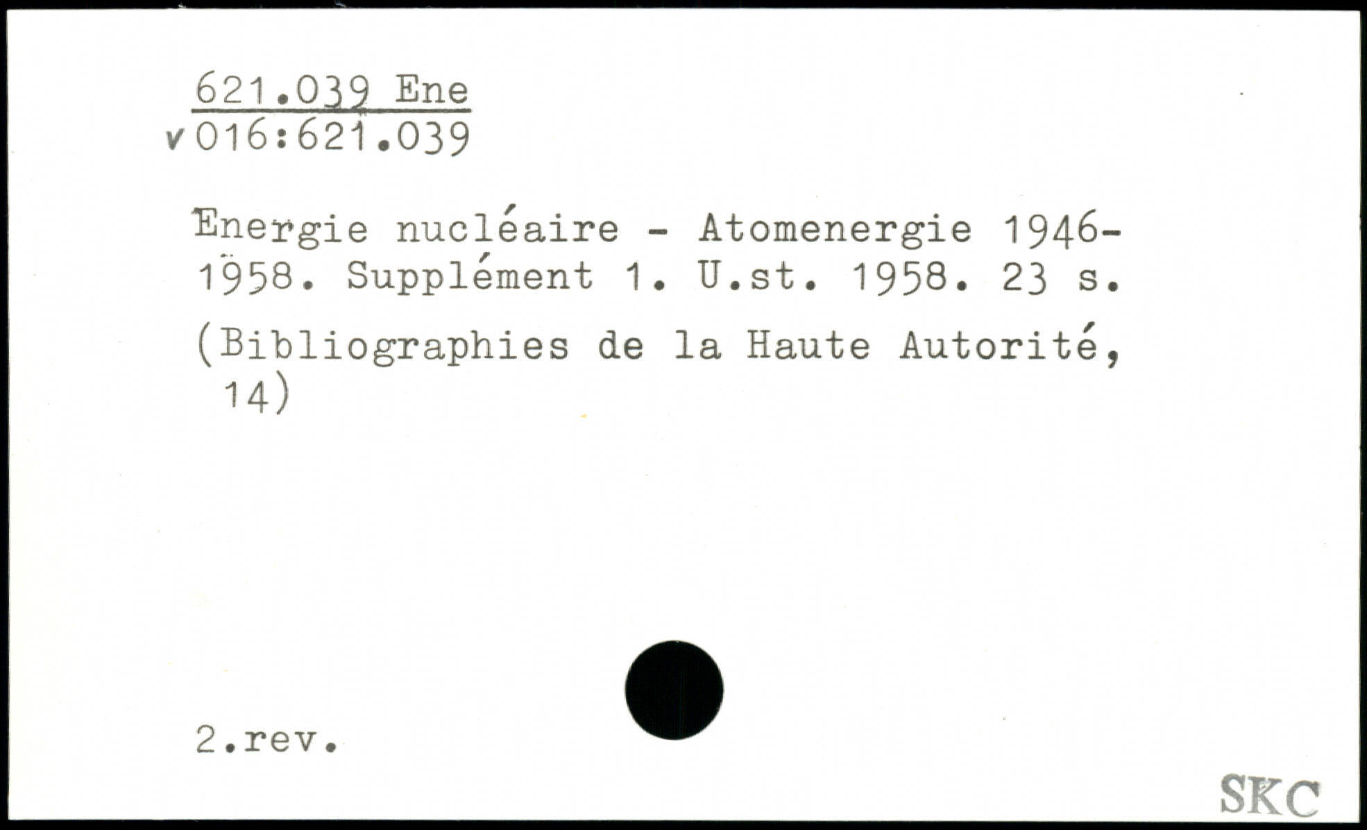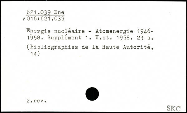 Energie nucléaire - Atomenergie 194-6-1958. Supplément 1. U.st. 1958.