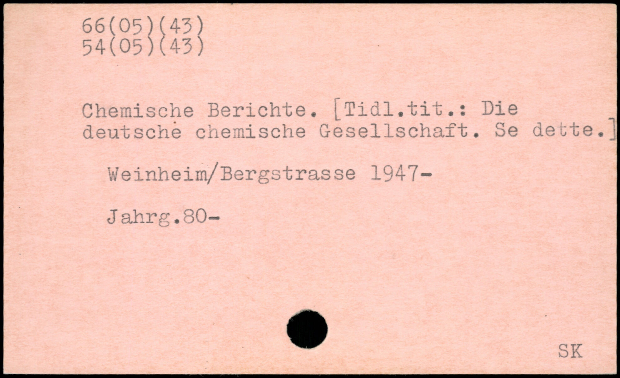 Chemische Berichte. [Tidl.tit.: Die deutsche chemische Gesellschaft. Se dette.] Weinheim/Bergstrasse 1947- J ahrg.80-