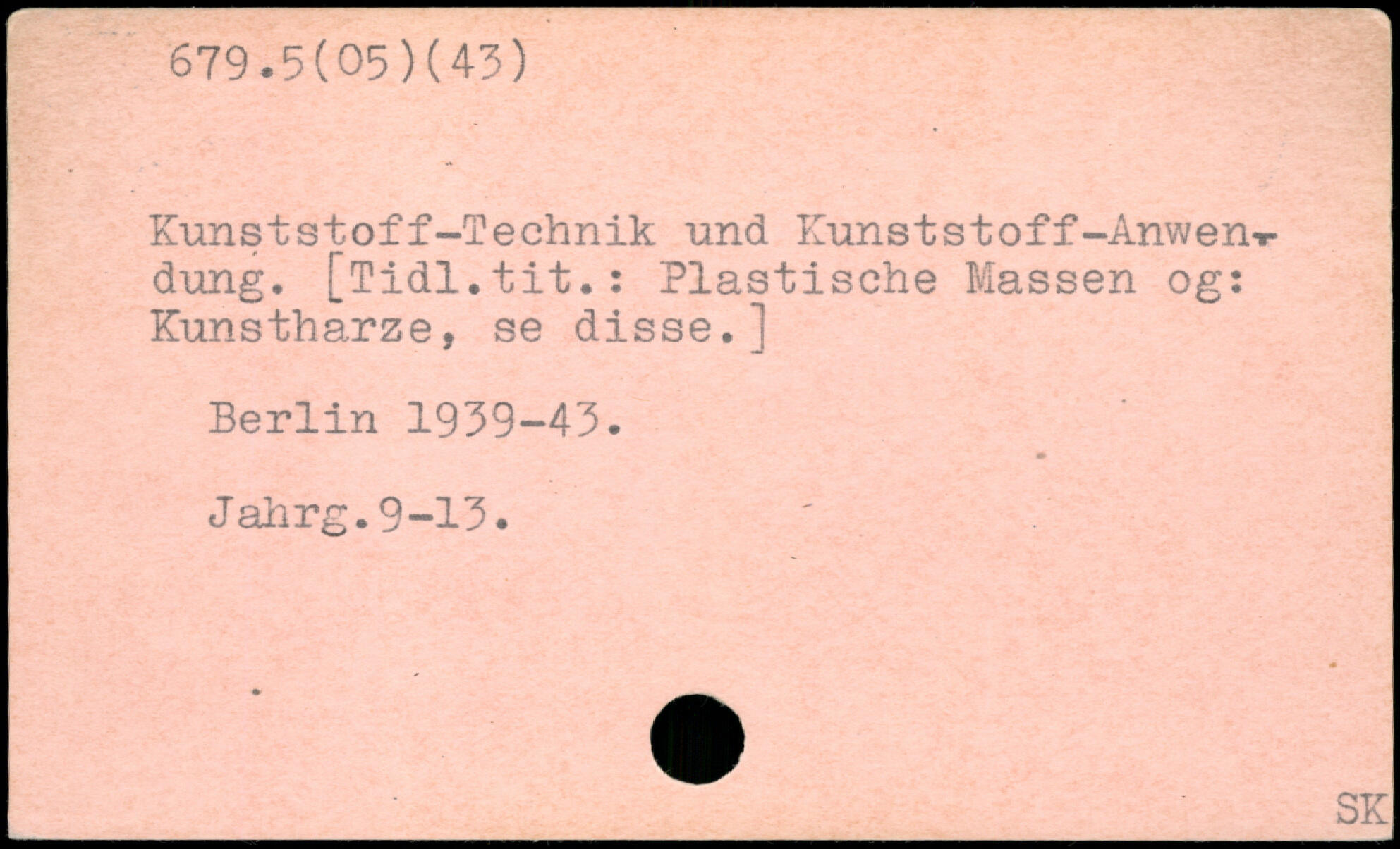 Kunststoff-Technik -und Kunststoff-Anwen-r düng. [Tidl.tit.: Plastische Massen og: Kunstharze, se disse.]