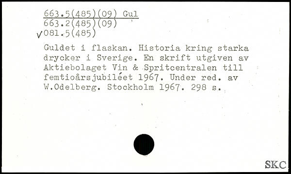 Guldet i flaskan. Historia kring starka drycker i Sverige. En skrift utgiven av Aktiebolaget Yin & Spritcentralen till femtioårsjubileet 1967, Under red. av W.Odelberg.