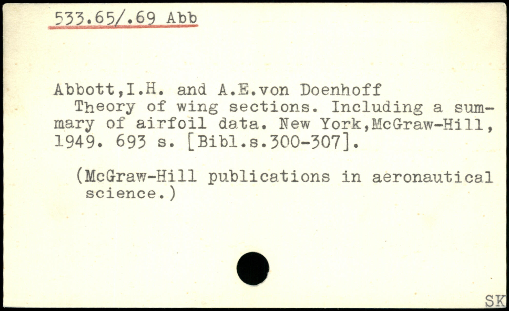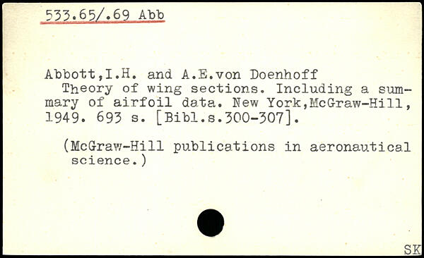Abbott,I.H. and A.E.von Doenhoff Theory of wing sections. Including a summary of airfoil data.