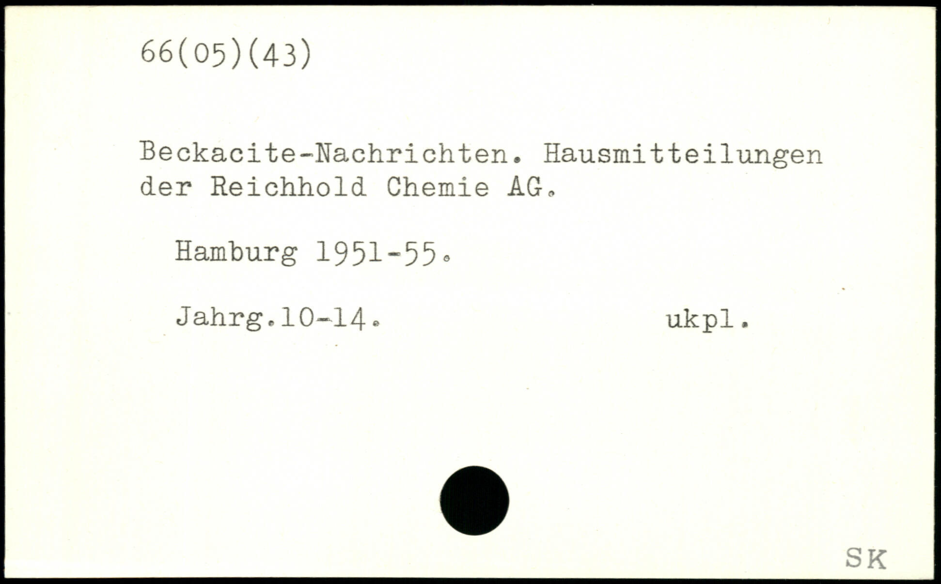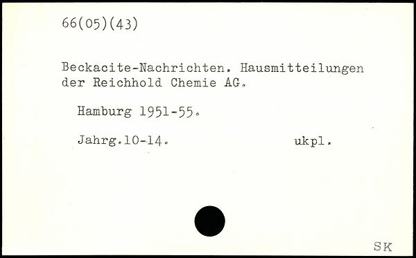 Beckacite-Nachrichten. Hausmitteilungen der Reichhold Chemie AG. Hamburg 19 51-5 5 , Jahrg.10-14, ukpl.