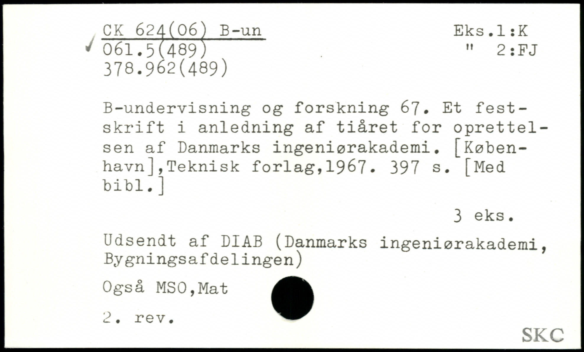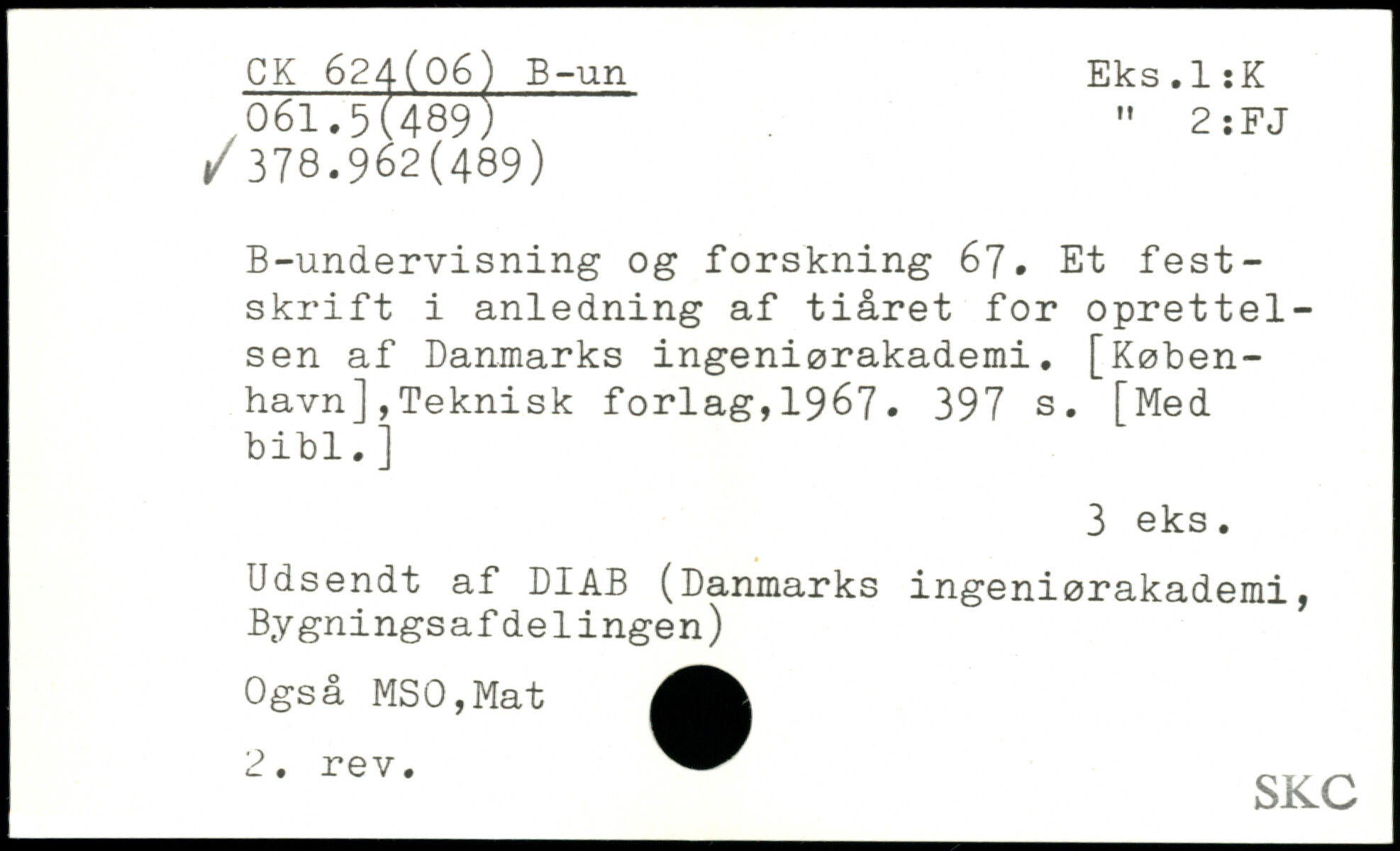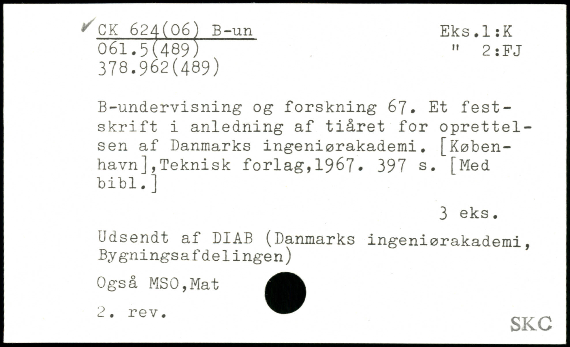 B-undervisning og forskning 67. Et festskrift i anledning af tiåret for oprettelsen af Danmarks ingeniørakademi. [København] , Teknisk forlag,1967.