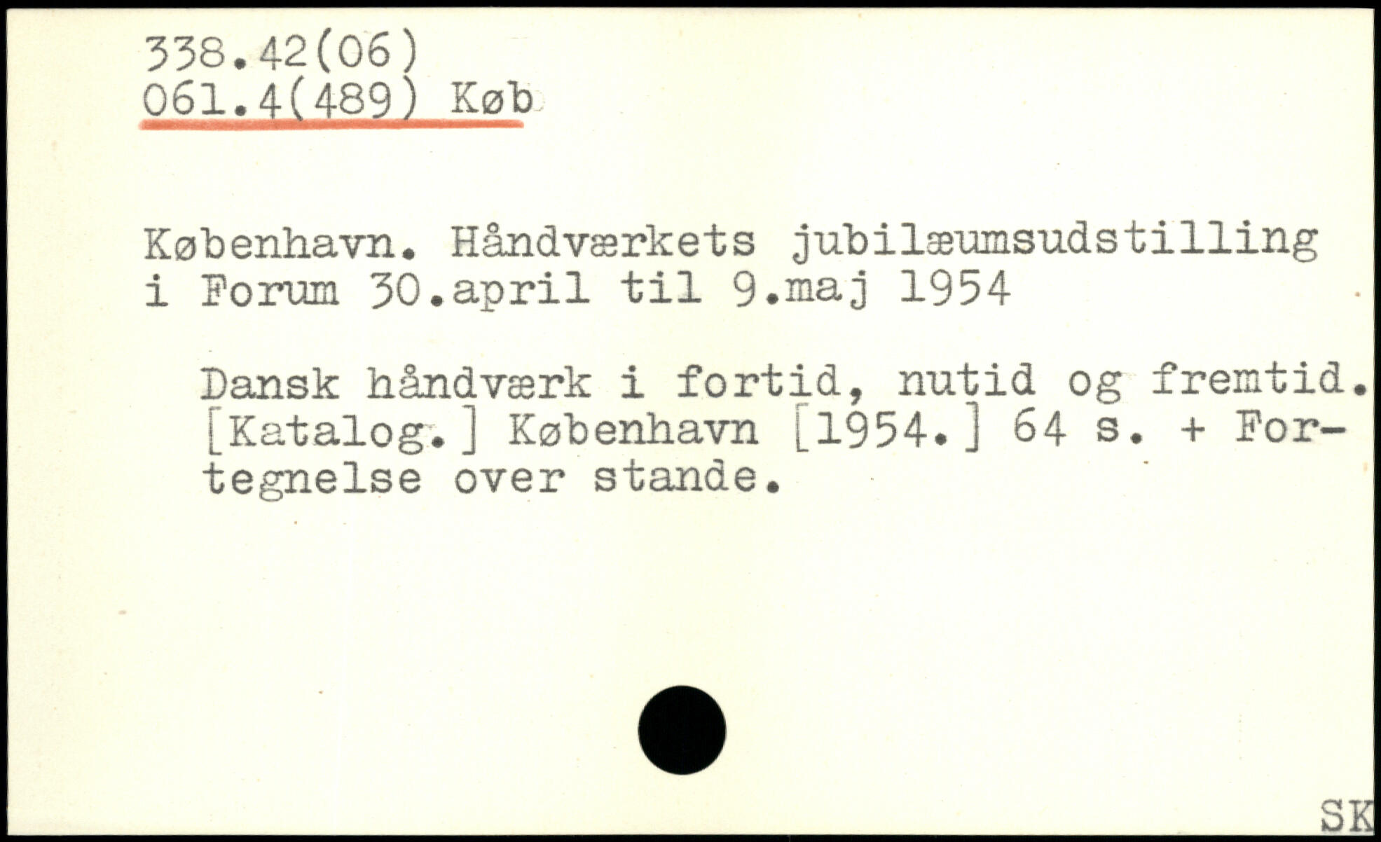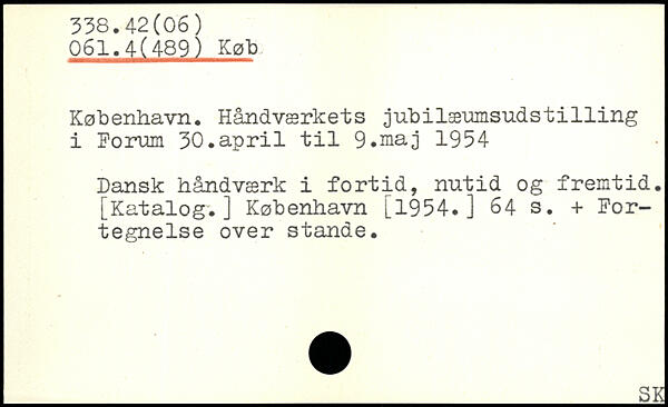 København. Håndværkets jubilæumsudst1111ng i Forum 30.april til 9.maj 1954 Dansk håndværk i fortid, nutid og fremtid. [Katalog.] København