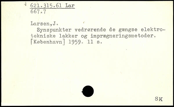 Synspunkter vedrørende de gængse elektrotekniske lakker og imprægneringsmetodere {"
