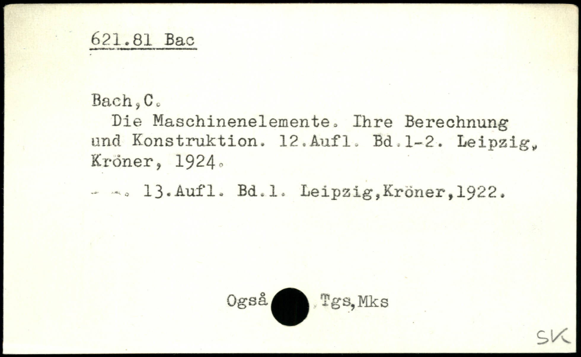 Die Maschinenelemente. Ihre Berechnung und Konstruktion. 12.Auf 1.