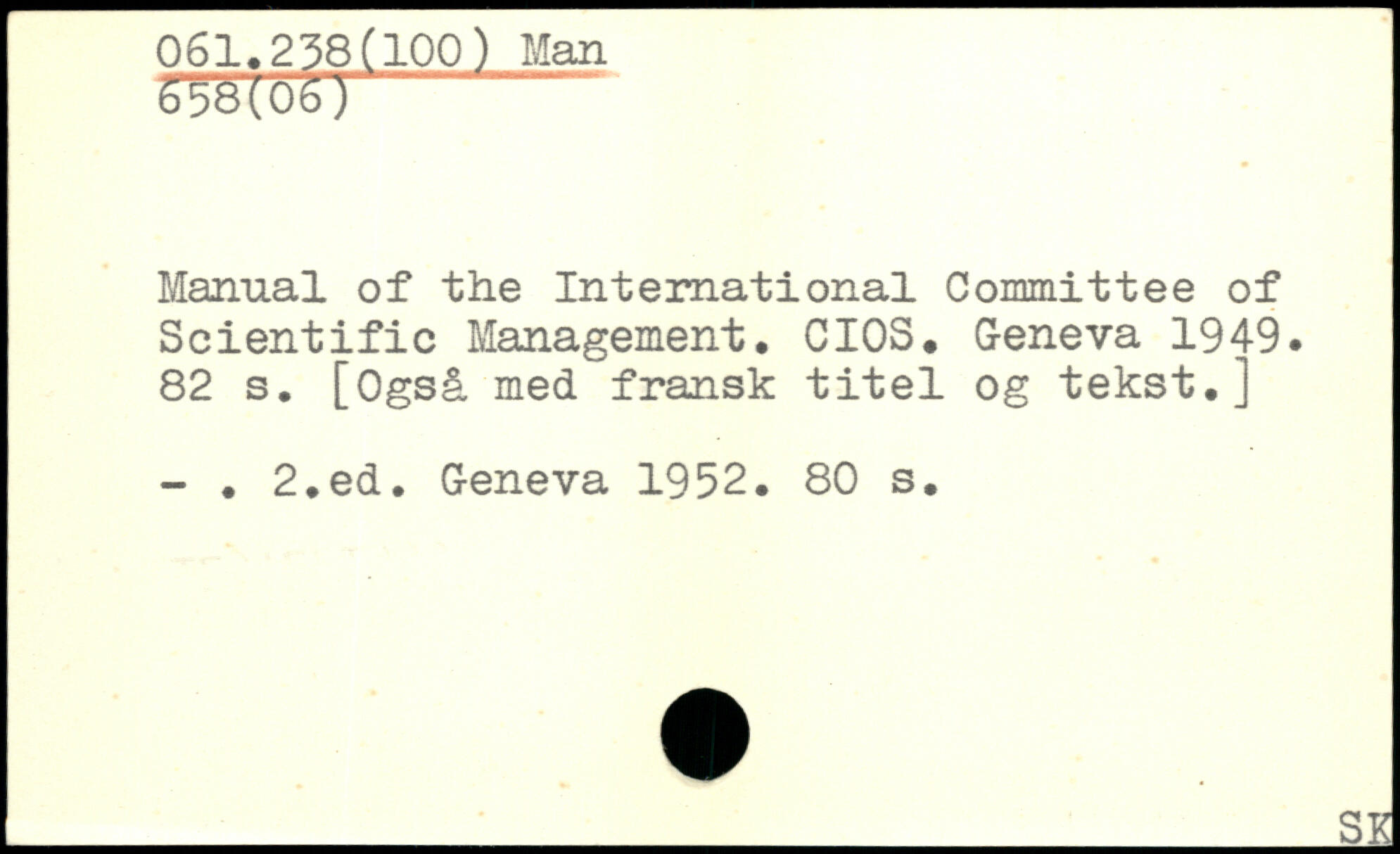 Manual of the International Committee of Scientific Management. CIOS. G-eneva 1949.