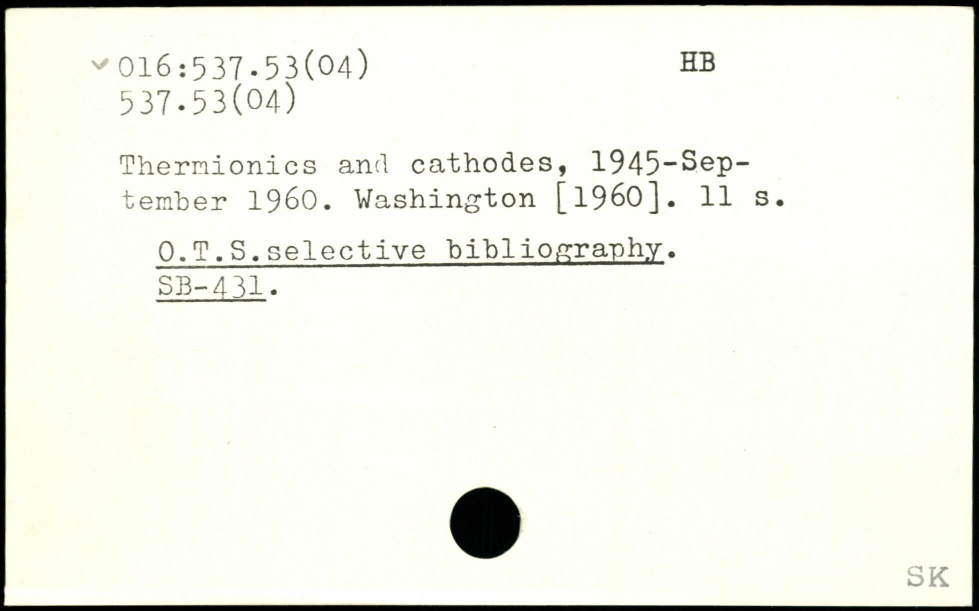 Therriionics and cathodes, 1945-Sep-temher 1960.