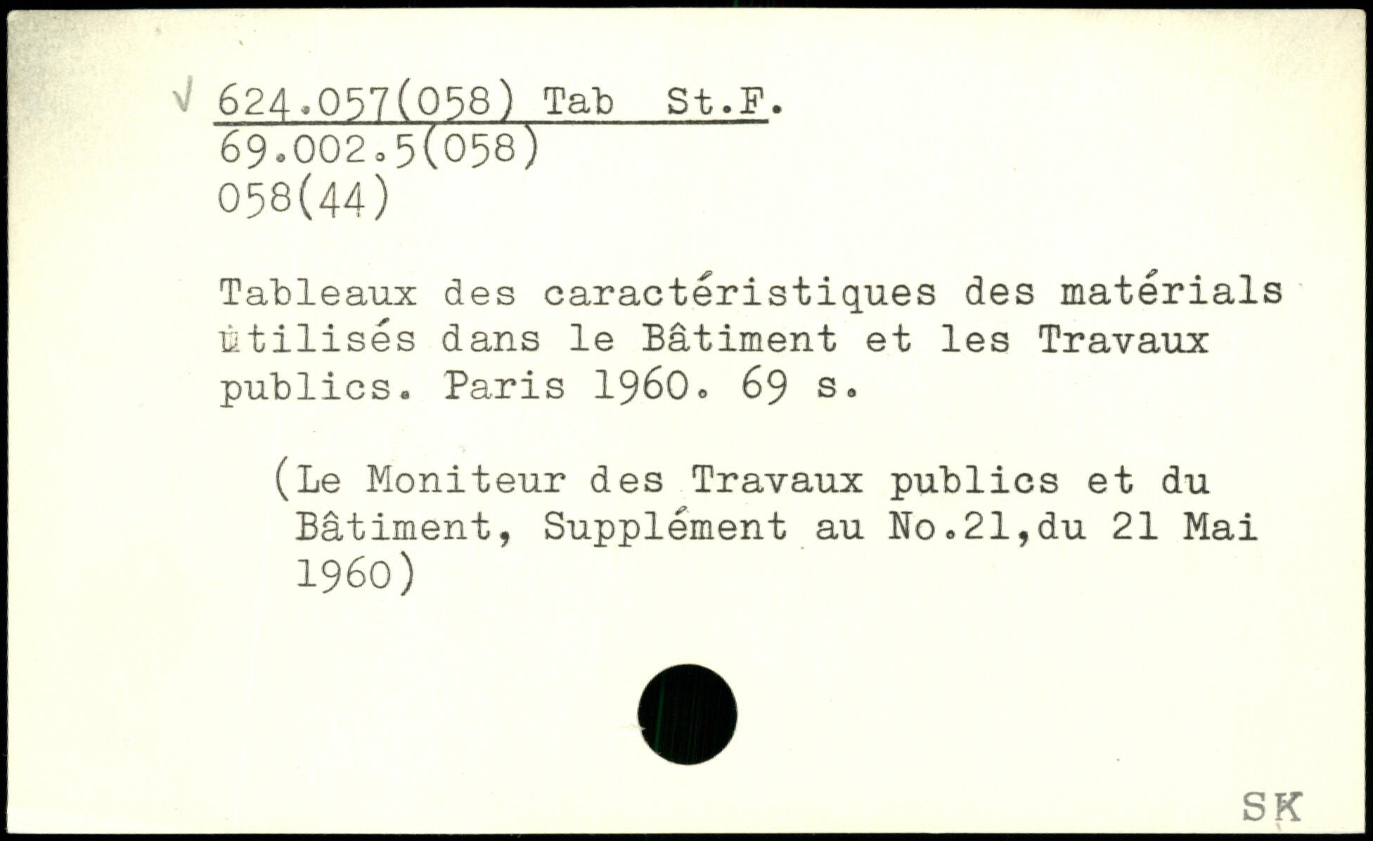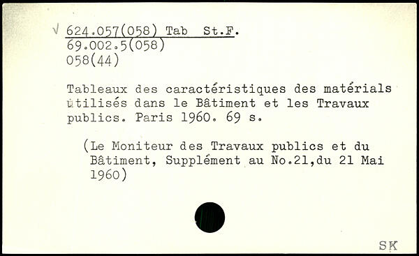 Tableaux des caractéristiques des matérials utilisés dans le Bâtiment et les Travaux publics.