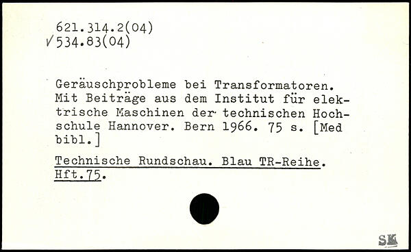 Geräuschprobleme bei Transformatoren. Mit Beiträge aus dem Institut für elektrische Maschinen der- technischen Hochschule Hannover.