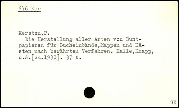 Die Herstellung aller Arten von Buntpapieren für BucheinBände,Mappen und Kästen nach Bewährten Verfahren. Halle,Knapp, u.a.[ca.1938]