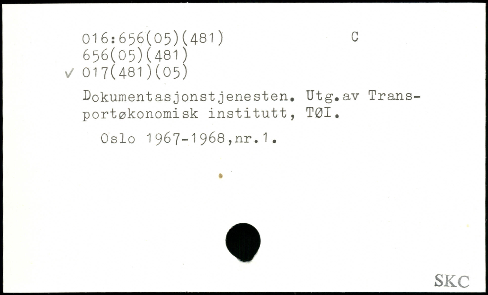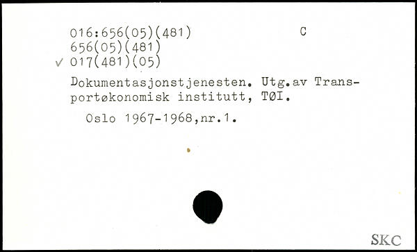 Dokument asjonstjenesten. Utg.av Transportøkonomisk institutt, TØI. Oslo 1967-1968,nr.1.