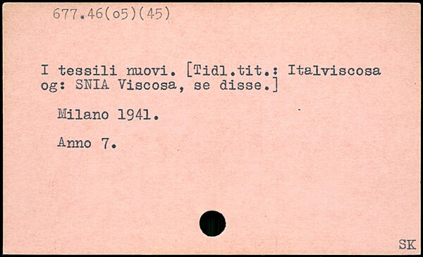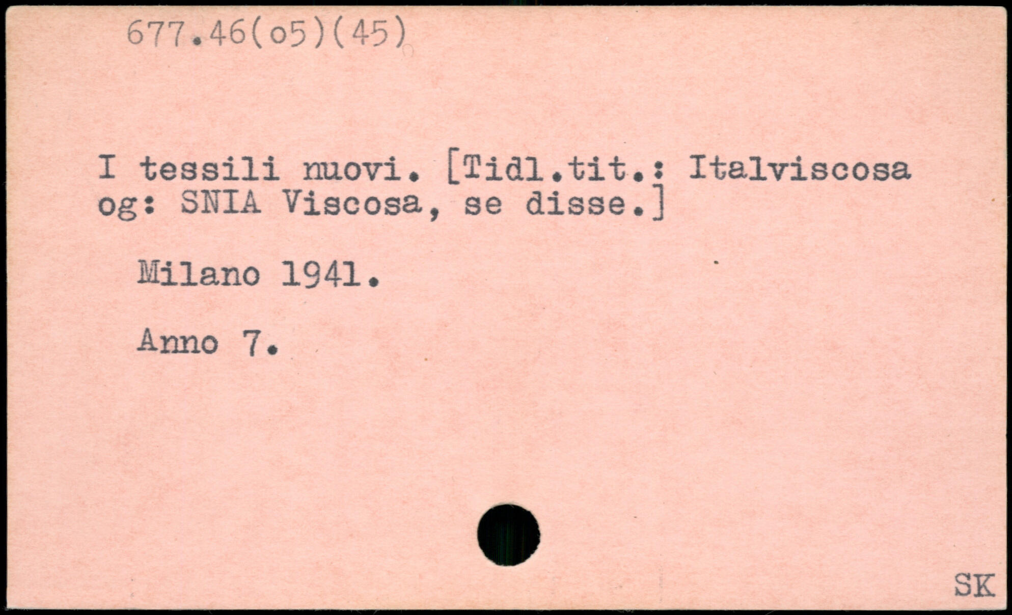 I tessili nuovi. [Tidl.tit.: Italviscosa og: SNIA Viscosa, se disse.] Milano 1941. Anno 7.