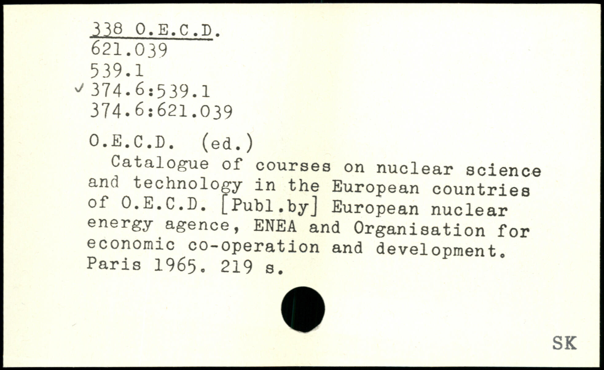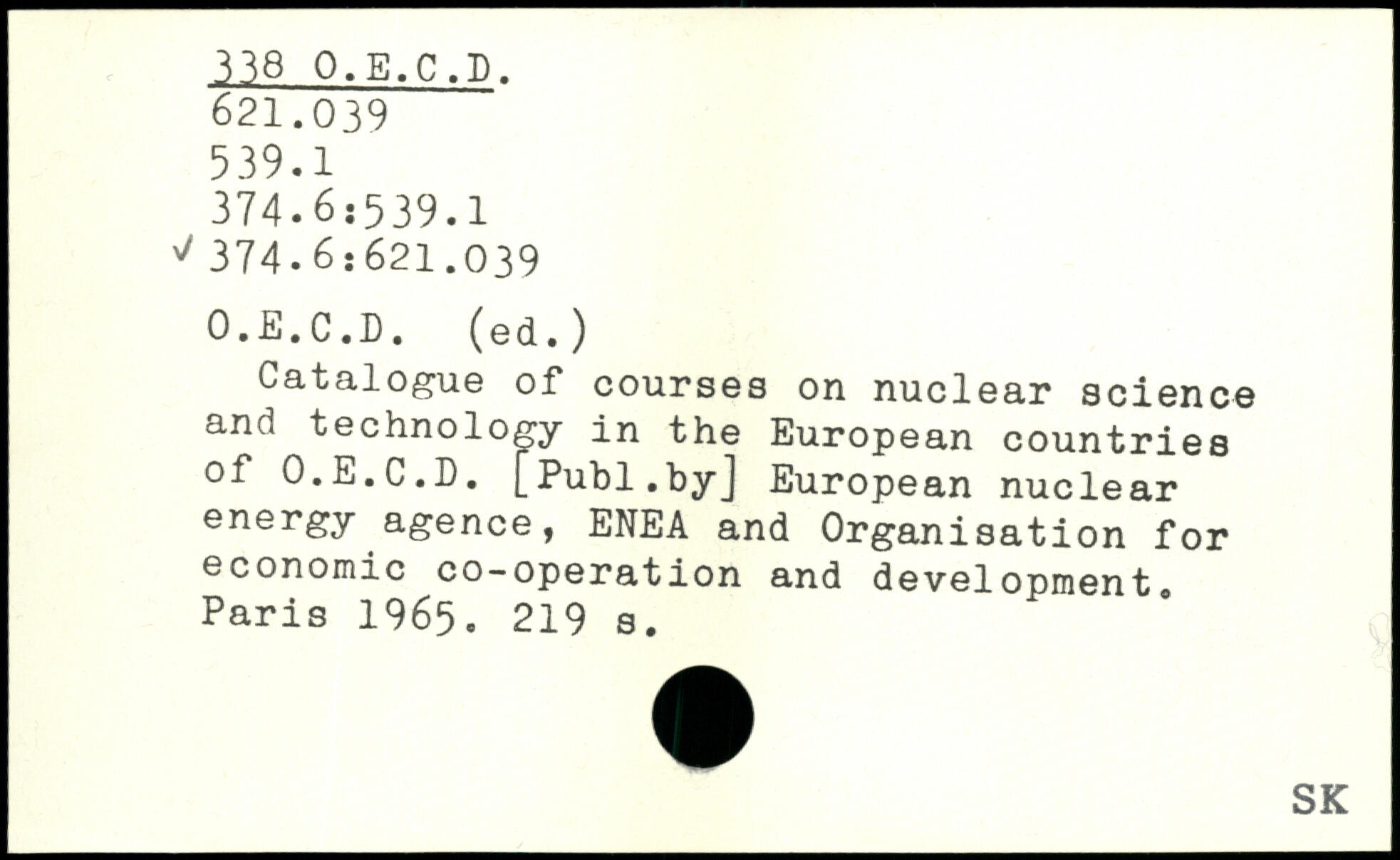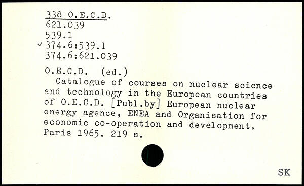 Catalogue of courses on nuclear science and technology in the European countries of O.E.C.D.