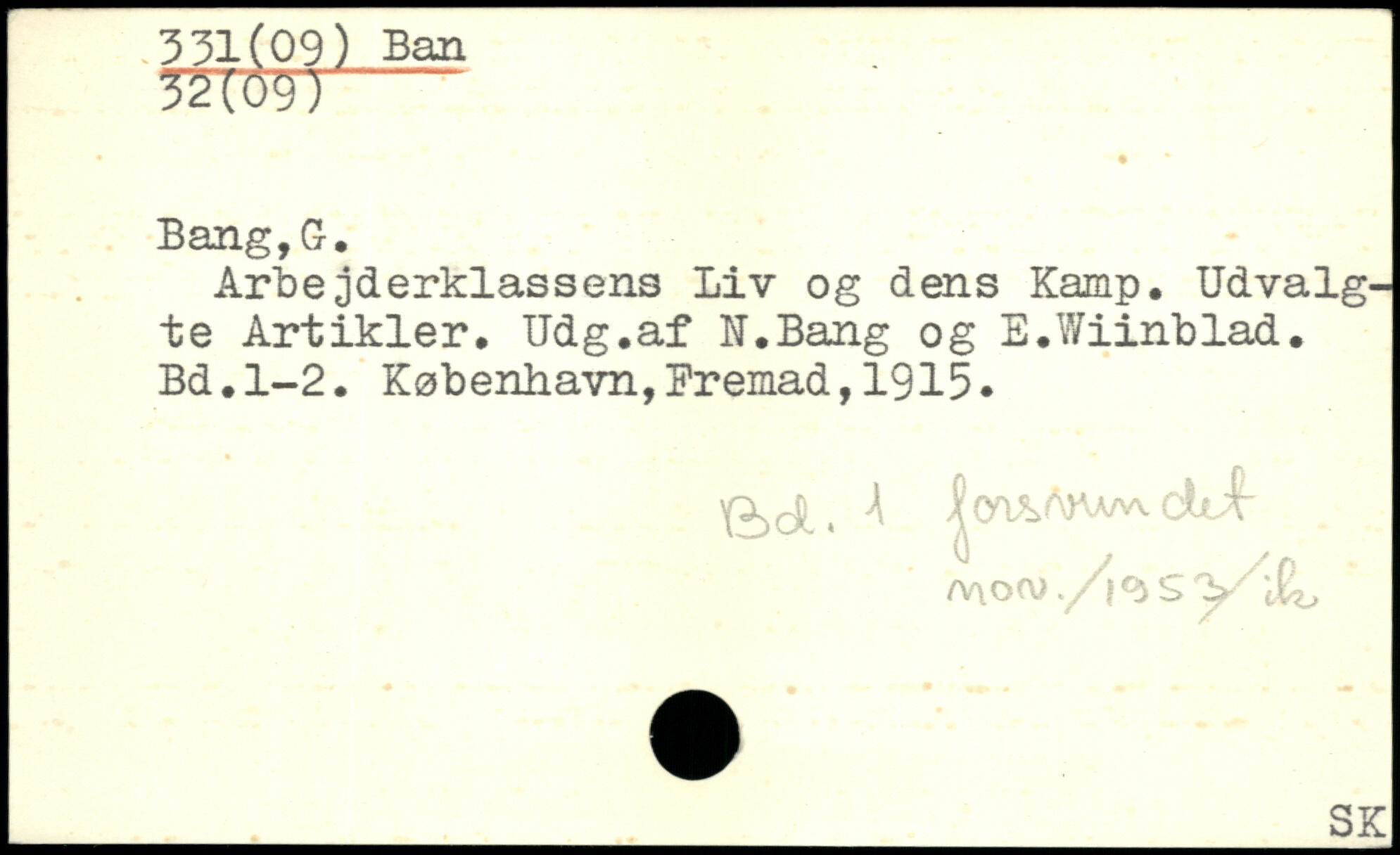 Arbejderklassens liv og dens Kamp, Udvalgte Artikler, Udg.af N.Bang og E.Wiinblad.
