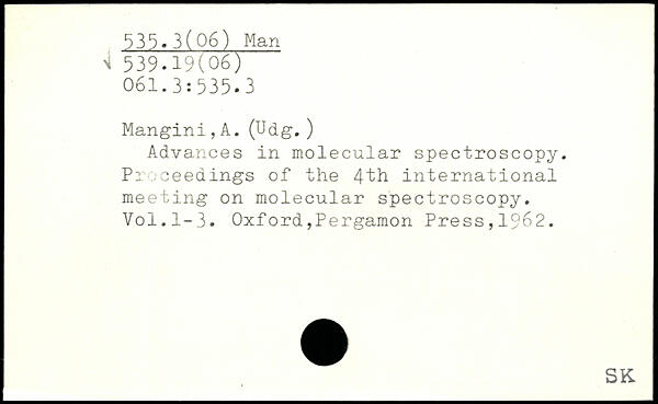 Advances in molecular spectroscopy. Proceedings of the 4th international meeting on molecular spectroscopy.