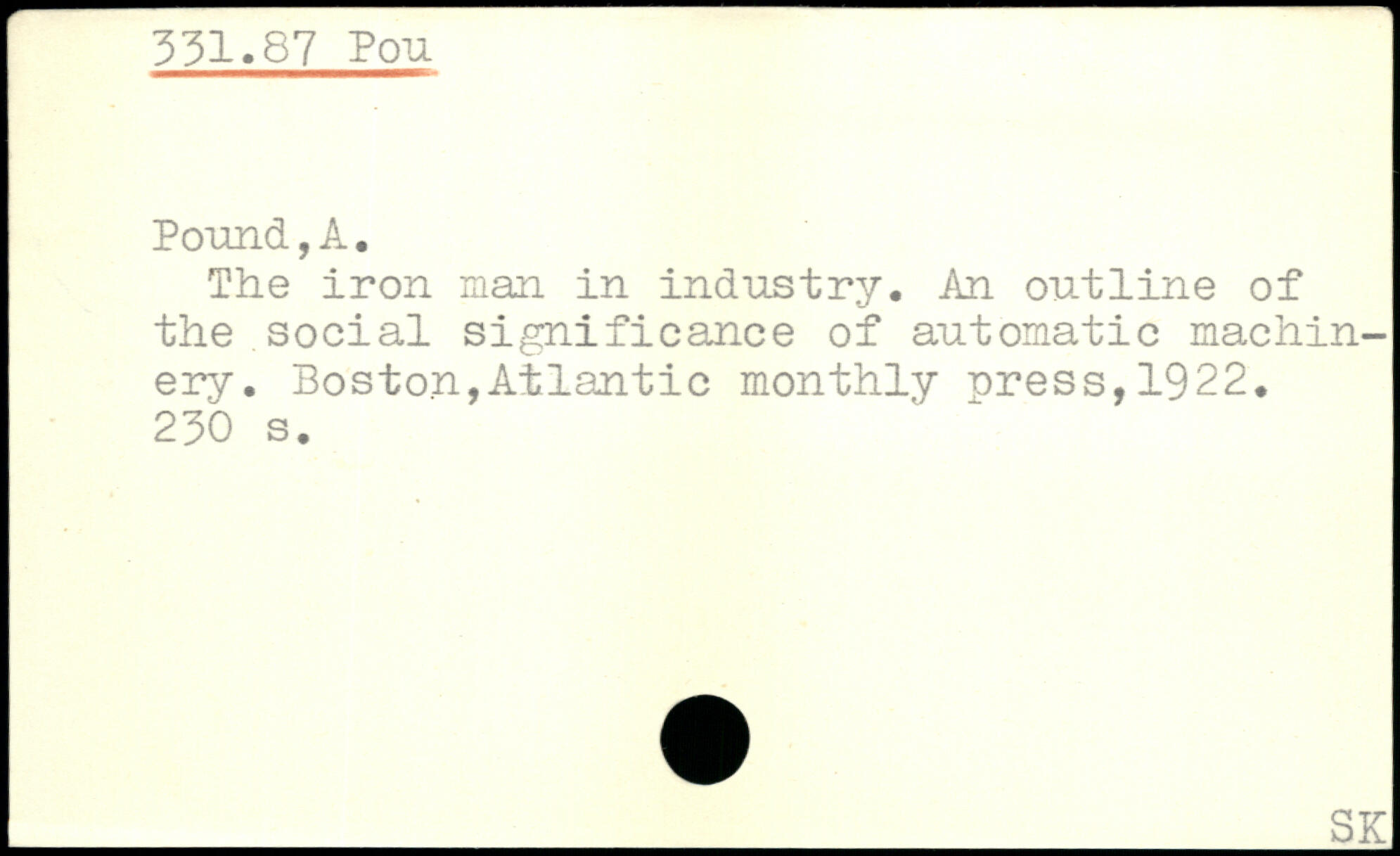 The iron man in industry. An outline of the social significance of automatic machinery.