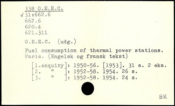 Fuel consumption of thermal power stations. Paris, (Engelsk og fransk tekst) l.enquiry : 1950-56. [1953].