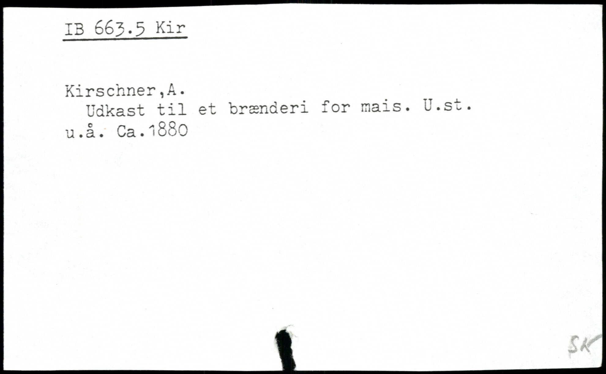 Udkast til et brænderi for mais. U.st. u.å. Ca.1880