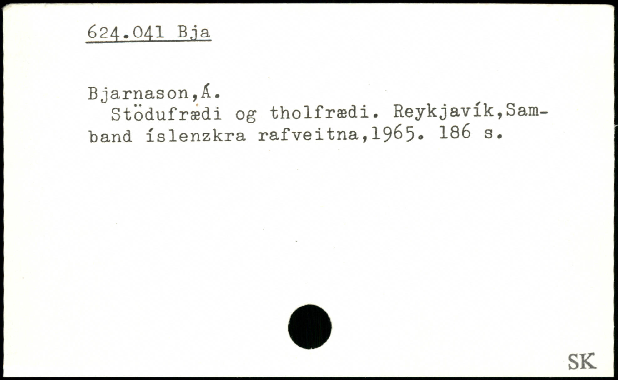 624.041 B.ia Bjarnason,Å. Stodufrædi og tholfrædi.