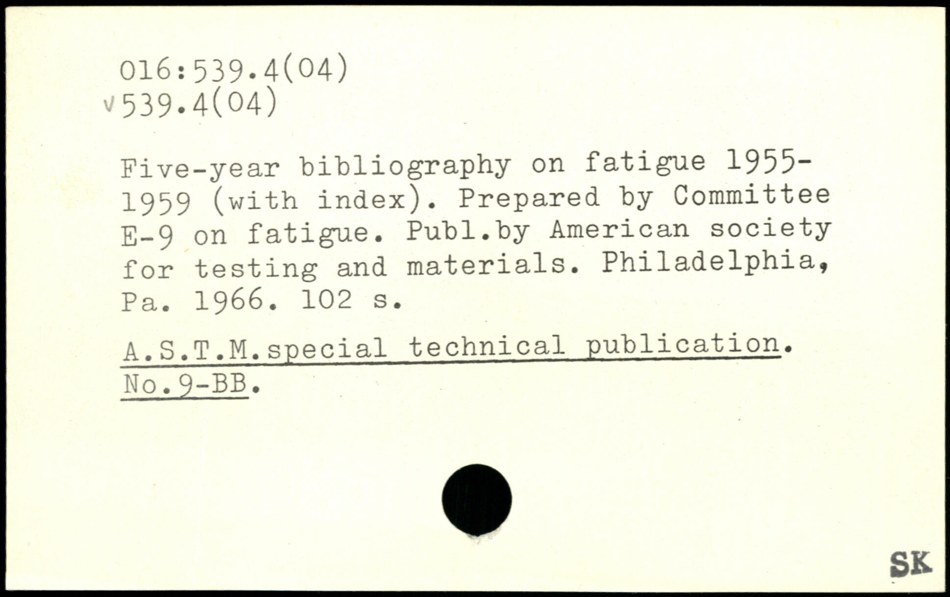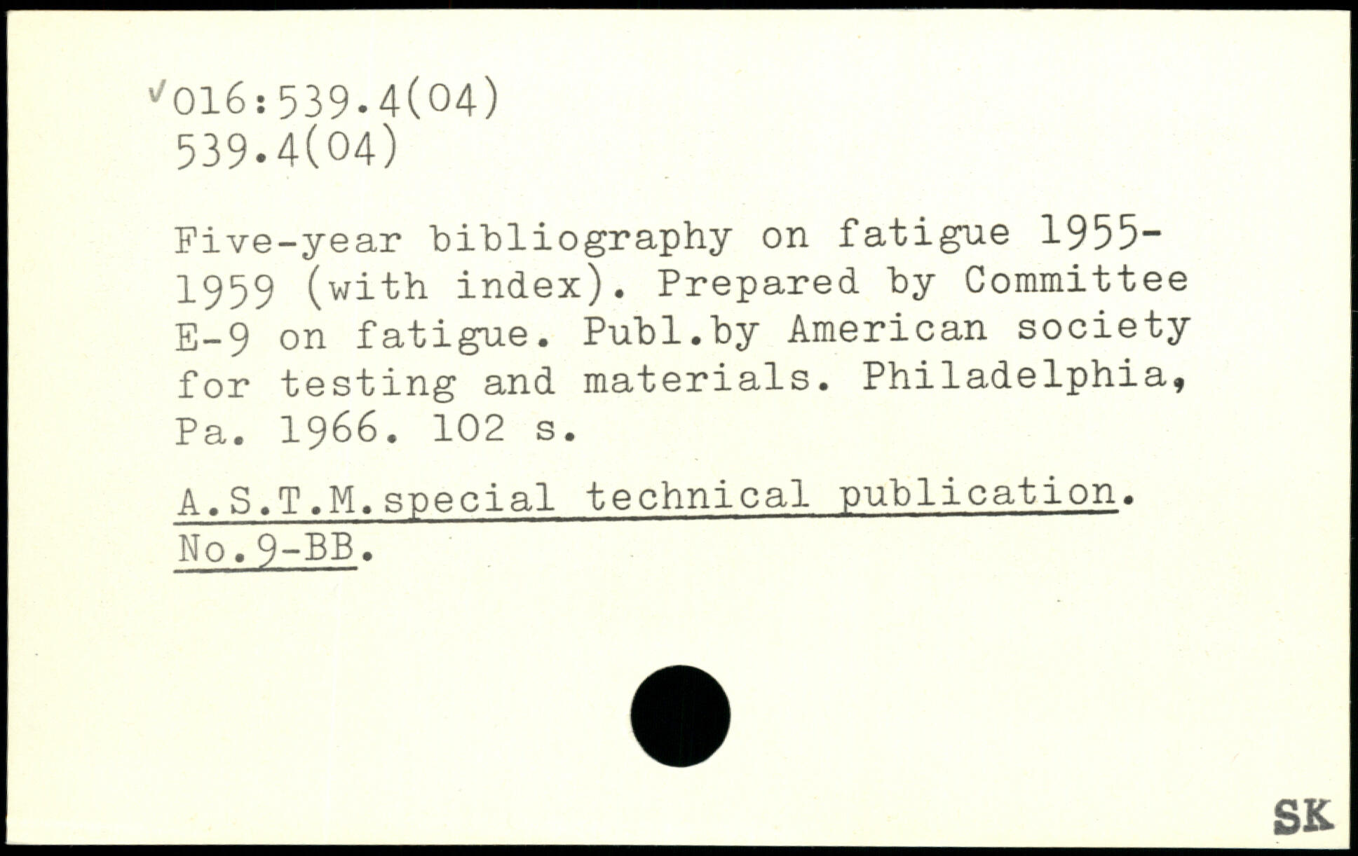 Five-year bibliography on fatigue 1955— 1959 (with index). Prepared by Committee E-9 on fatigue.