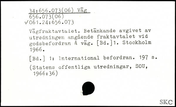 Vägfraktavtalet. Betänkande avgivet av utredningen angående fraktavtalet vid godsbefordran å vag. [Bd.]l.