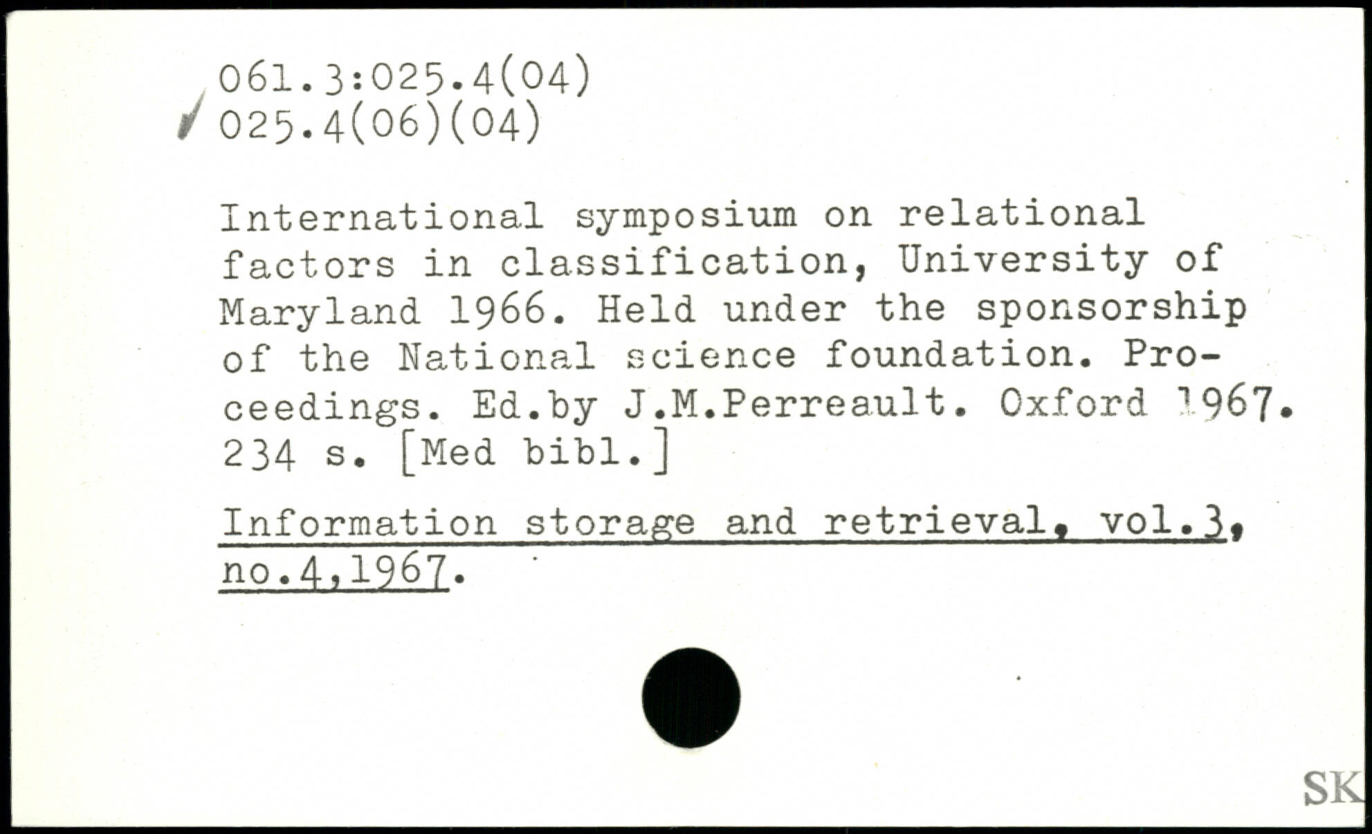 International symposium on relational factors in classification, University of Maryland 1966. Held under the sponsorship of the National science foundation. Proceedings. Ed.by J.M.Perreault.