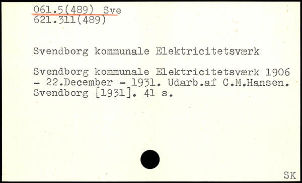 Svendborg kommunale Elektricitetsværk Svendborg kommunale Elektricitetsværk 1906 - 22.December - 1931. Udarb.af C.M.Hansen. Svendborg [1931].